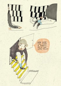“How dare you have a party on a day like this?” The comics collage ‘Hideous Fiesta’ by the Finnish visual artist and musician Heta Bilaletdin is a story about a mysterious party and questions of freedom.