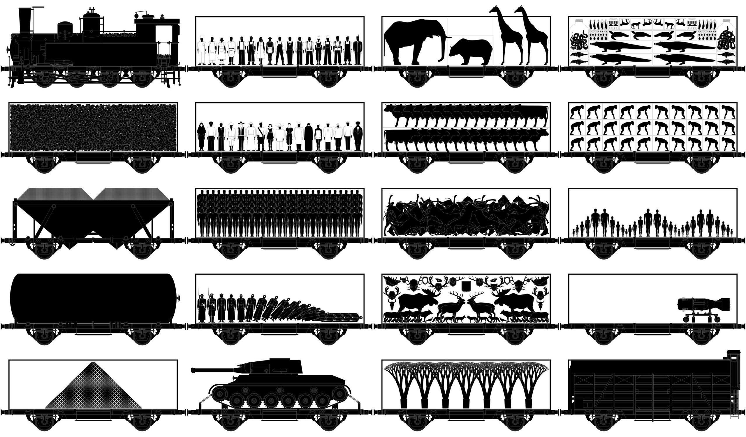 The Locomotive, by Julian Tuwim, is one the most famous Polish poems for children. Designer Małgorzata Gurowska and journalist Joanna Ruszczyk present its graphic and literary reinterpretation for adults. Tuwim’s poem stimulates the imagination with a description of contents in wagons of a train sitting at a station. Although the poet is remembered today primarily as the author of poetry for children, he is also renowned as a satirist who critically described the political-social reality of his time. Gurowska and Ruszczyk, in The Locomotive/IDEOLO, make reference to Tuwim’s social awareness and frequently uncompromising stance, using the text of his poem as a framework for presenting their own position concerning the situation in present-day. In their version, the railway wagons are full of Jews, aggressive football fans, soldiers, gays and lesbians, animals, as well as inanimate objects. It is all accompanied by political commentary, summarizing inequality and social injustice. In this way, the authors challenge not only Polish reality with difficult questions about national identity, racism, anti-Semitism, and attitudes towards ecology and animals.