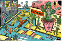 The story is filled with twists and turns, escapades, absurd humour and wonderful linocuts