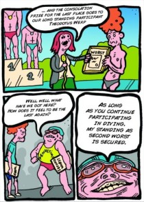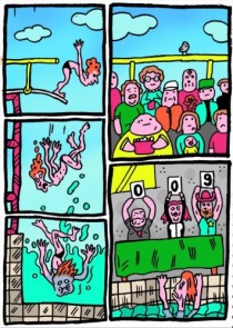 All characters appearing in this work are fictitious. Any resemblance to real persons, living or dead, is purely coincidental. Or is it? The only thing sure is that the sports world depicted by Ernests Kļaviņš and Andrejs Kļaviņš in ‘Rainbow of Pain’ is perfectly crazy – 9 points!