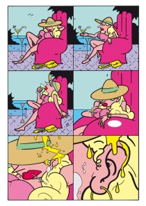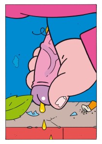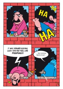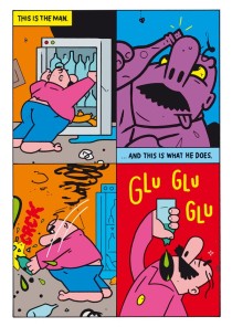 Tommi Musturi’s Snake in the Nose is a free-flow story about an angry man alone in his flat, reminiscent of a manic, badly-drawn Scooby Doo comic. It turns into a real nightmare after just a few pages – containing full frontal and rear nudity, and bad taste in general. Some would call this humour, but that’s a bit doubtful.