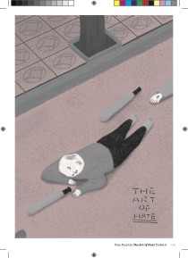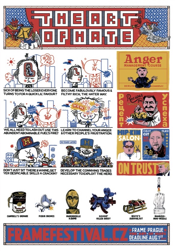 Over 96 works were received for The Art of Hate competition during 3rd Prague Comics Art Festival „Frame”. The anthology includes 46 works by artists from Argentina, Australia, Austria, Belgium, Bulgaria, Canada, Colombia, Czech Republic, Egypt, Estonia, Finland, Germany, Hong Kong, Italy, Latvia, Lithuania, Poland, Portugal, Romania, Russia, Serbia, Slovakia, Slovenia, Taiwan, The Netherlands, UK