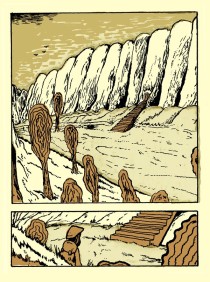 ‘This No Place to Stay’ is a semi-fictional, semi-biographical story by the German artist Michael Jordan. His bearded alter ego travels through a coffee cup into a labyrinth inside a hospital laboratory. Hopefully the wound in the nurse’s hand can rescue him…