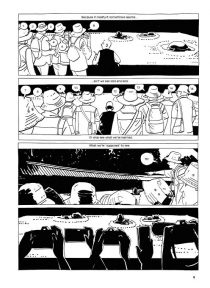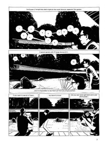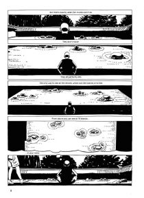 Frenk Meeuwsen draws all this in simple black and white, in reduced realistic pictures, in which he very skilfully incorporates the possibilities of the comic: different panel sizes and perspectives on the events, surreal dream worlds, massive font blocks that harass characters. Meeuwsen has arranged his material in very short chapters, his book meanders through time. This creates an attractive directionless storytelling, similar to the form of teaching of Zen Buddhism, the reproduction of short, incoherent “Kōans” with statements of the Zen masters.