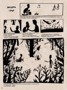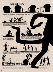 Takie właśnie są krótkie ludowe historie zawarte w tej książce. Większość z nich wywodzi się z tradycyjnego folkloru Afryki, jednak w wykonaniu dziecięcych gawędziarzy przybrały dość specyficzny charakter. Teksty te trafiły do rąk czeskiego artysty Davida Böhma w walizce jego siostry Terezie, jako stos uczniowskich wypracowań z małej środkowoaf rykańskiej szkoły. Wyobraźnia Czarnego Kontynentu bezlitośnie rozbija nasze europejskie wyobrażenia o tym, jak powinna wyglądać ludowa baśń. Choć dla dzieci komiks ten okazać się może nieco szokujący, dla dorosłych będzie to wyjątkowo odświeżająca pozycja.