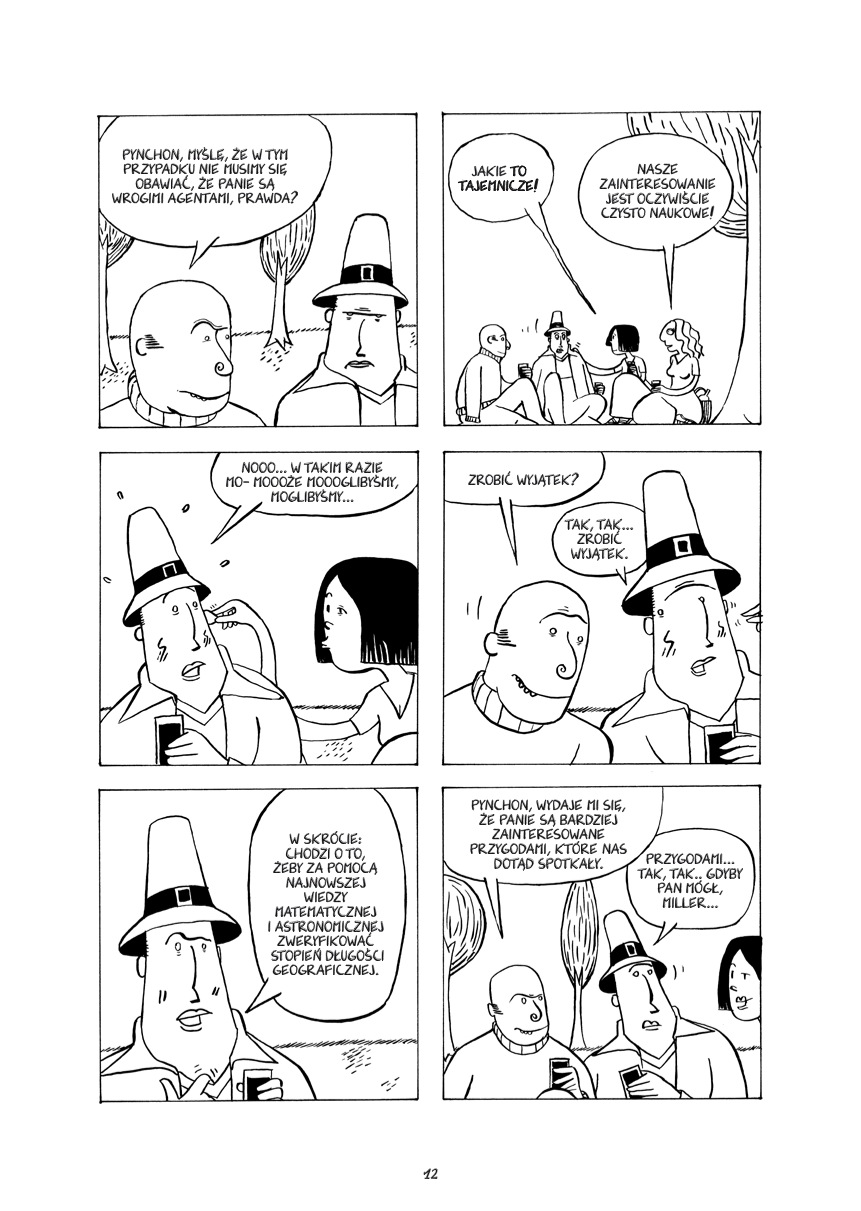 W miarę jak uświadamiają sobie skalę tego przedsięwzięcia, ogarnia ich też poczucie bezsensu własnej egzystencji, i z każdym kolejnym pomiarem coraz bardziej skupiają się na tym, jaki kierunek przyjmuje ich życie. Skłonny do melancholii Pynchon rozpamiętuje śmierć ukochanej żony, podczas gdy pragmatyczny Miller z determinacją szuka zapomnienia w rozpuście. Żal, skrucha, wiara, farsa, druga płeć, dzieci, gadające krokodyle oraz ser – to tylko niektóre z tematów, które porusza dwadzieścia tajemniczych przypowieści Millera i Pynchona. Może i ludzie nauki czują się bezpiecznie w otoczeniu liczb, ale niektórych rzeczy nie da się przełożyć na wykresy. Leopold Maurer Urodzony w 1969 r. w Wiedniu. W latach 1988-1994 studiował socjologię na Uniwersytecie Wiedeńskim. Przez kolejne cztery lata był studentem malarstwa i grafiki na wiedeńskiej Akademii Sztuk Pięknych. Żyje i pracuje w Wiedniu i Trautmannsdorfie. Komiks „Miller i Pynchon” ukazał się w Austrii (Luftschacht), w Anglii (SelfMadeHero), we Francji (Editions Cambourakis) oraz w Japonii (Suisei Inc.) Wydano dzięki dofinansowaniu ze środków Austriackiego Forum Kultury w Warszawie.
