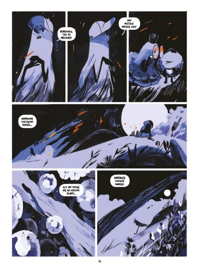 „Skok” to eksplozja odważnych i wyrazistych ilustracji. Na każdej stronie znajdowałem taką porcję oryginalnych rysunków, że miałem ochotę ciągle do nich wracać i na nowo karmić oczy wszystkimi szczegółami.